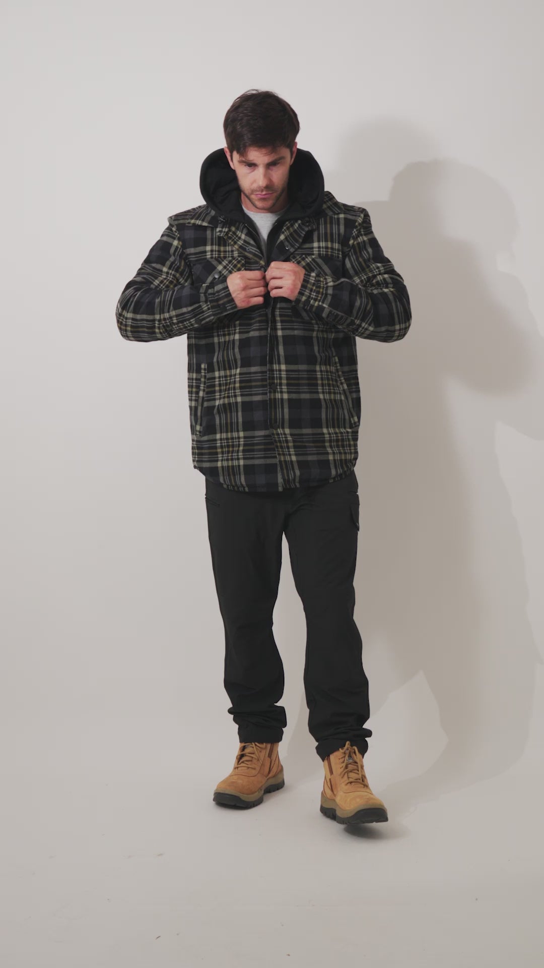 The Quilted Flannel Jacket is constructed with a 300GSM cotton flannel outer layer and a 210T polyester taffeta quilted lining, providing warmth and durability. The dual-layer construction enhances the jacket's insulating properties, ensuring extra warmth in cold weather.